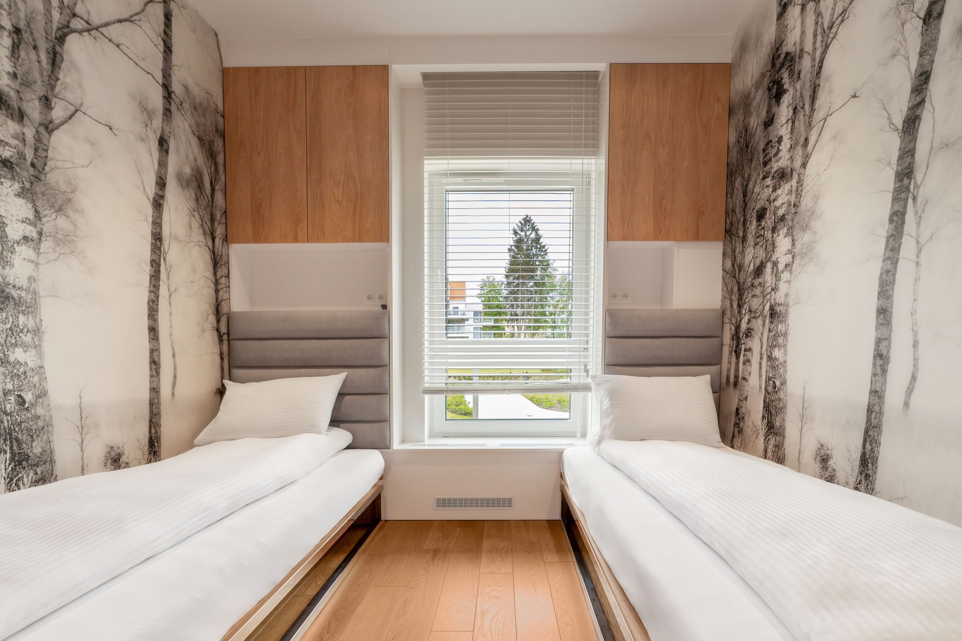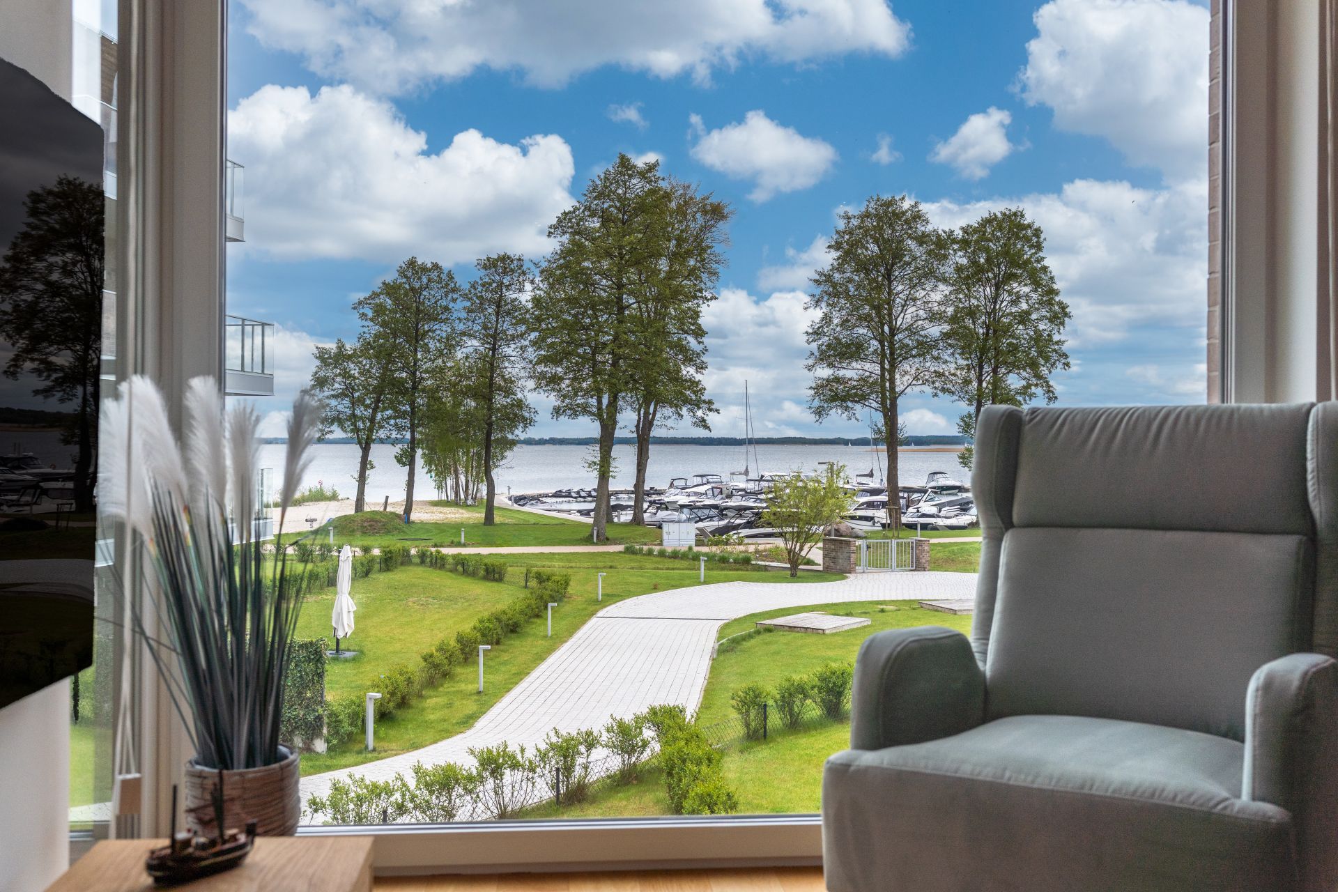 Apartament z rewelacyjnym widokiem na jezioro w pierwszej linii brzegowej, w odległości około 60 m od placu zabaw, plaży i portu. Apartament znajduje się na 1 piętrze, ma dwie sypialnie z wygodnymi dwuosobowymi łóżkami oraz salon z rozkładaną kanapą, w pełni wyposażoną kuchnią z ekspresem i zestawem do parzenia kawy i herbaty.