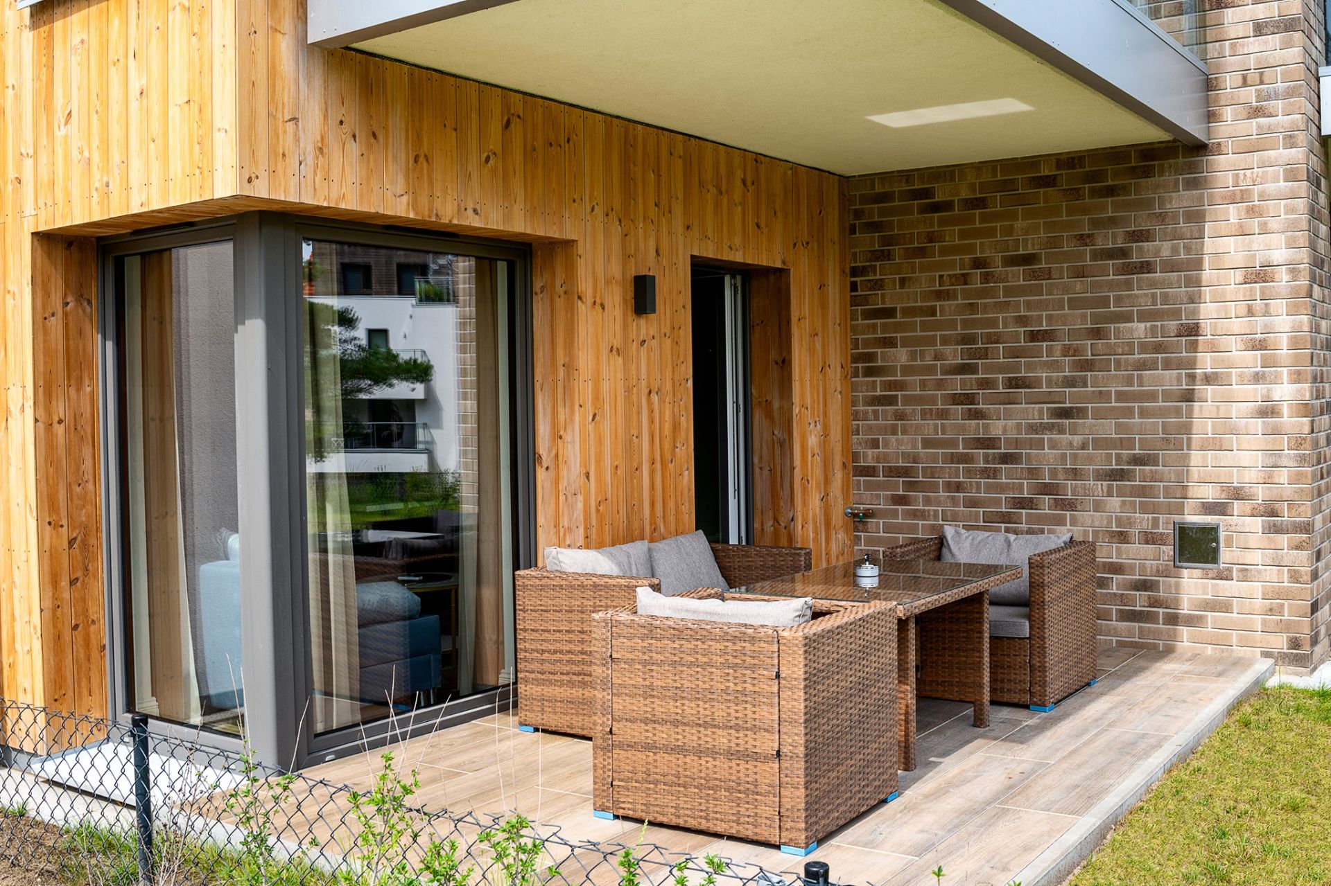 Apartament E02 - 4 osobowy z widokiem na jezioro i ogródkiem