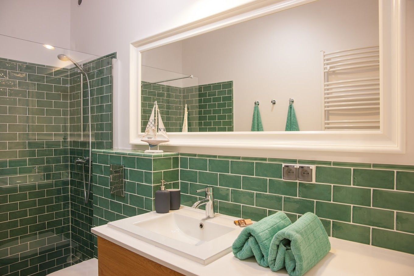 Apartament składa się z jednej sypialni z wygodnym łóżkiem, salonu z rozkładaną sofą i telewizorem, w pełni wyposażonej kuchni (lodówka, zmywarka, płyta kuchenna, czajnik, ekspres) oraz łazienki z prysznicem. Do dyspozycji gości pozostają również ręczniki i pościel. Dodatkowym atutem jest taras z widokiem na jezioro – idealne miejsce na poranną kawę lub podziwianie najpiękniejszych zachodów słońca.